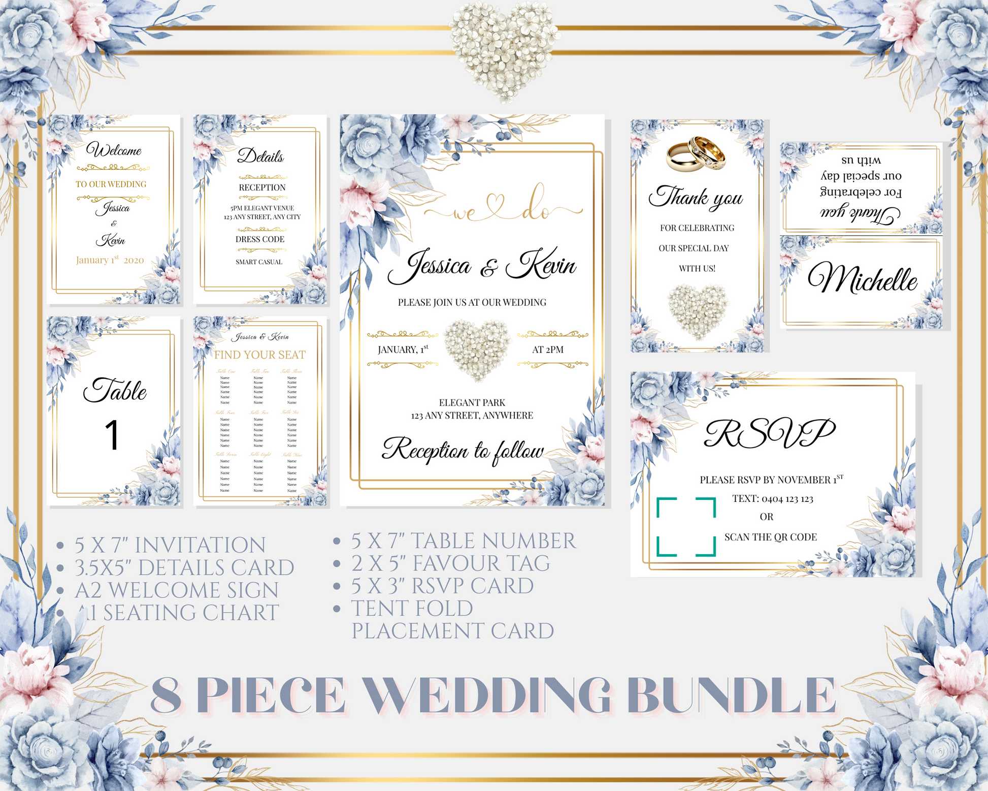 So, ditch the DIY disasters and embrace the beauty and simplicity of our Editable Blue & Gold Floral Wedding Package. It's the perfect way to add a touch of floral magic to your big day!